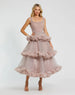 Introducing our enchanting High Neck Flutter Sleeve Dot Net Ruffle Dress, a masterpiece in tulle and net fabric. Boasting a captivating square neckline and delicate sleeveless design, it's adorned with a cascading ruffled A-line skirt, evoking a sense of timeless elegance and charm. Perfect for those seeking a show-stopping ensemble for any special occasion.