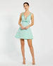 This Hand Beaded Detail A-Line Mini Dress features a deep plunge neckline, intricate beaded embellishments, and a center bow detail. Perfect for a sophisticated and stylish look, this dress will make you stand out at any event.