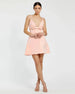 This Hand Beaded Detail A-Line Mini Dress features a deep plunge neckline, intricate beaded embellishments, and a center bow detail. Perfect for a sophisticated and stylish look, this dress will make you stand out at any event.