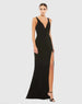 Classic plunge neck jersey gown, featuring a stunning low back and a thigh-high slit for a glamorous, yet daring look. Perfect for black tie events, cocktail parties, or formal occasions, this gown offers a flattering fit with its smooth, stretchy fabric, combining sophistication and a touch of allure.