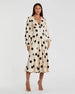 Beige Polka Dot Charmeuse Long Sleeve V Neck Midi Dress