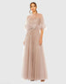 This elegant gown is made from lightweight chiffon fabric, ensuring both comfort and grace. The asymmetrical ruffle hem adds a whimsical touch, while the short flutter sleeves provide a delicate and flattering silhouette. Ieena for Mac Duggal Chiffon fabric (100% polyester) Partially lined V-neck...