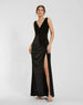 Black Deep V High Slit Draped Velvet Fitted Gown