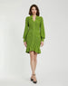 Green Long Sleeve Button Up Collared Bobble Knit Sweater Dress
